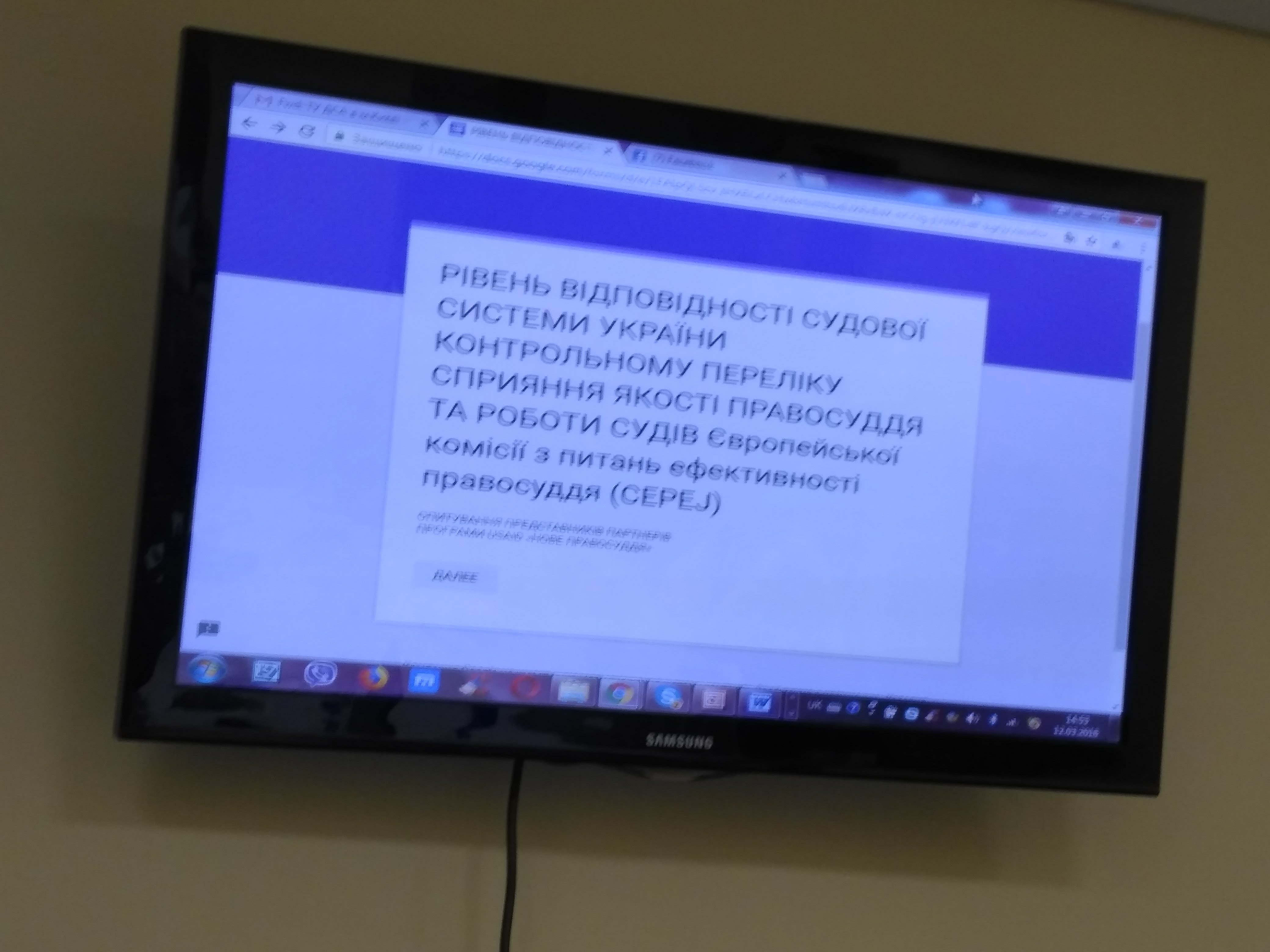 Наталія Чумак під час своєї презентації зазначила: «ГО «ІСМ» під час опитування* апробує у пілотних регіонах новий метод оцінювання роботи як окремого суду, так і судової системи взагалі, що базується на дослідженні відповідності судів стандартам Ради Європи щодо ефективного та якісного судочинства